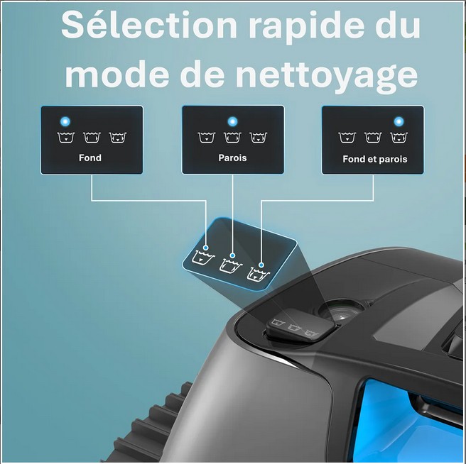 Modes de nettoyage multiples :Le Wybot C1 Pro propose 5 modes de nettoyage 4 cycles de programmation sur 7 jours. Il est capable d'adapter la fréquence et la durée des cycles selon les besoin en temps réel.