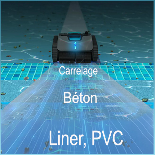 | Type de piscine idéale | Hors sol et enterrés, tous types, toutes formes, tous revêtements |